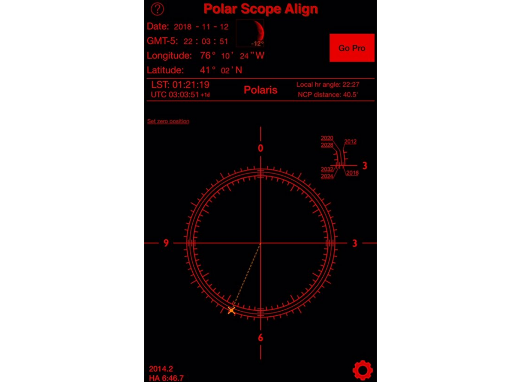 Second thing we need to determine what your actual Latitude is on the Earth. There are a few ways to figure this out but the easiest is to download the "Polar Scope Align" app. Set your Latitude on the mount. Note: Adjustments maybe necessary during step 3.